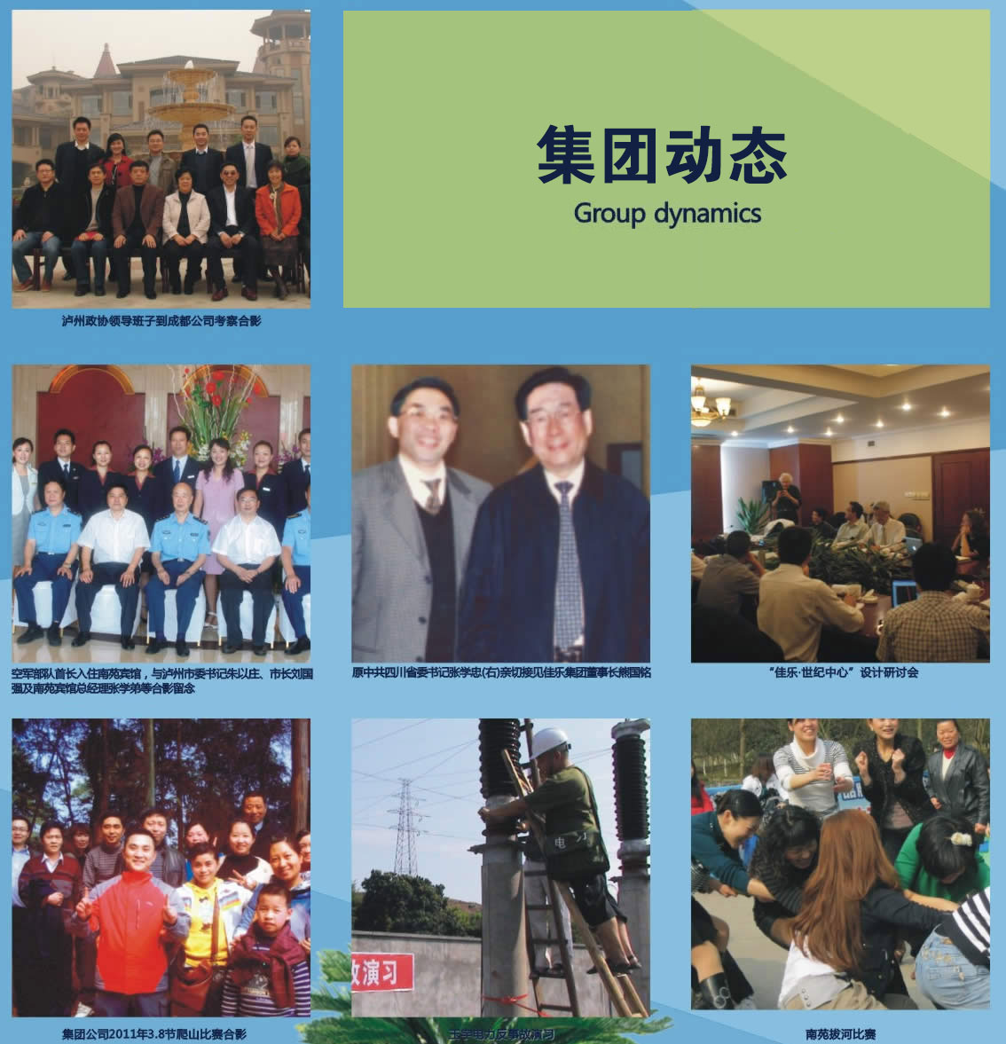 四川省佳樂集團有限公司是一家以房地產業為主,電力供應、能源開發、賓館旅游等相關產業多元發展的綜合性民營企業集團。公司建立了“三個板塊”的多元化發展戰略:一是基礎板塊,以集團的傳統產業房地產開發和建筑安裝為主導,繼續往專業化、精品化方向發展,在瀘州、重慶、廣州、成都等地積極開展房地產業務。二是保障板塊,以收益穩定的賓館旅游、物業經營、水電能源等為保障,提升集團抗風險能力,確保集團在行業困境中平安涉險,穩步發展。三是拓展板塊,以市場為導向,積極拓展能源、農業綜合開發、金融服務等產業,于2004年初控股瀘州玉宇電力有限責任公司,并在合江縣境內投資近2億元新建了元興水電站和老龍口水電站。2009年,佳樂集團增資擴股瀘州市商業銀行,成為該行第二大股東,又參股組建了重慶隆生農業發展有限公司,從事循環農業和綠色食品開發。三個板塊的建立和發展,使佳樂集團的多元化戰略雛形初步形成,逐步實現系列化、多元化、跨行業的規模發展。有了驕人的業績,也獲得了社會的認可。佳樂集團相繼榮獲“四川省重合同守信用企業”、“四川省用戶滿意企業”、“四川省守法誠信單位”、“中國企業形象AAA級單位”等各種榮譽兩百余項。