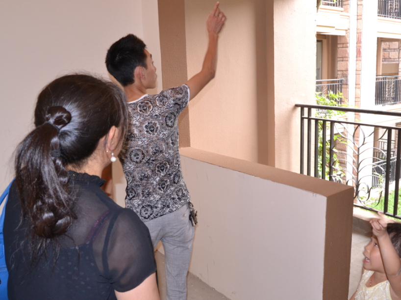 這家人正在仔細驗房,層高、面寬、徑深,墻壁、門窗、天花板,預留端口、踢腳線、客廳、臥室、廚房、洗手間,每一個角度,每一個細節都不放過,一圈下來,眼神里是遮掩不住的笑意。