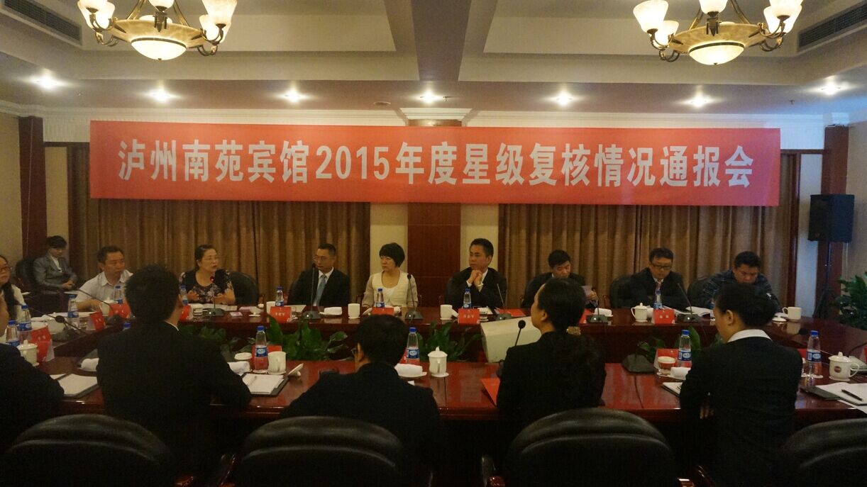 2015年10月21日、22日,由四川省旅游局副巡視員呂志軍帶隊的星級復核檢查專家組一行對瀘州南苑賓館進行了四星級飯店年度復核檢查。