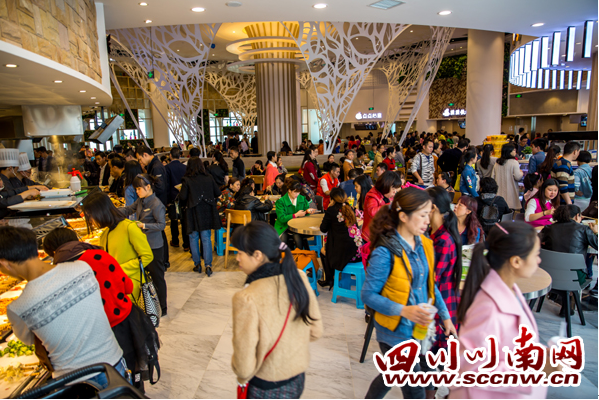 上午10時,華潤萬象匯正式開門營業后,早已聚集在外的上萬市民紛紛涌入萬象匯內。從各家時尚品牌店、迪卡儂、H &M、小鬼當家、卡索,到IMAX,無不人潮涌動。