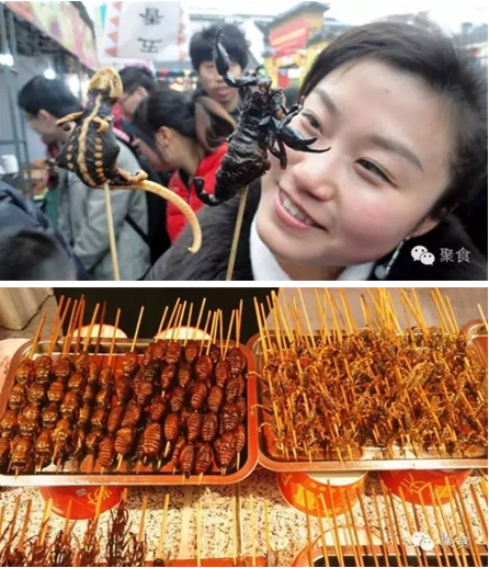 一串串蝎子、蜈蚣、蜘蛛……感覺要開掛了!這就是傳說中的“五毒”,風味獨特,還是佐酒佳肴,沒吃過的一定要試試,是時候收下這舌尖上的良藥了!