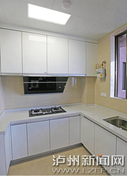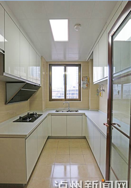 9、廚房使用鋁扣板吊頂,易于打掃油煙進(jìn)行清洗。