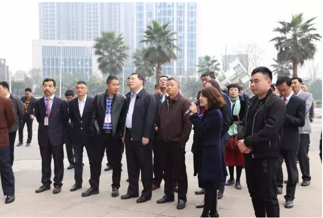 (圖為中國青年企業家協會“夢想同行•共促發展”瀘州行考察團在瀘州金融商業中心考察)