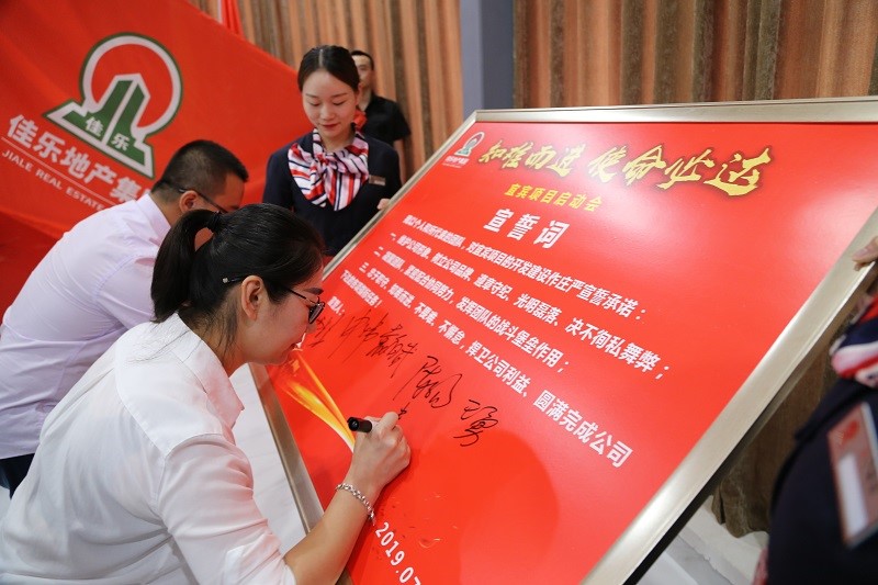 7月16日,“知難而進,使命必達”佳樂地產集團宜賓項目啟動會在益佳地產二樓大會議室舉行,董事長熊國銘、地產職能部門經理級及以上人員、宜賓項目團隊成員參加會議。