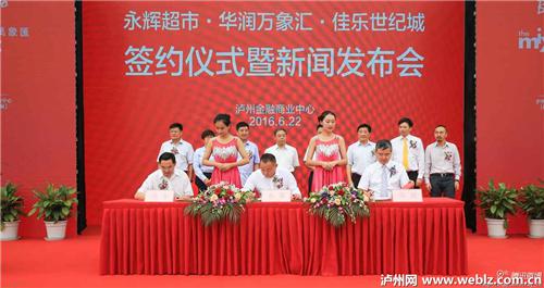 2016年6月22日上午,永輝超市•華潤(rùn)萬(wàn)象匯•佳樂(lè)世紀(jì)城簽約儀式暨新聞發(fā)布會(huì)在佳樂(lè)世紀(jì)城展示中心舉行。永輝超市正式簽約進(jìn)駐瀘州金融商業(yè)中心,成為繼華潤(rùn)置地后,又一入駐世紀(jì)城的商業(yè)巨頭,超市預(yù)計(jì)8月底開業(yè)。市委書記蔣輔義講話,市人大常委會(huì)主任陳雁出席簽約儀式。