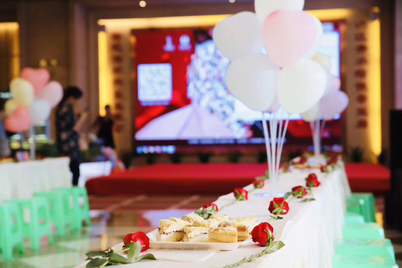 粉色調的布置、柔情的氣球、精致的甜點,現場滿滿輕松愜意,打破著初次見面的陌生感。
